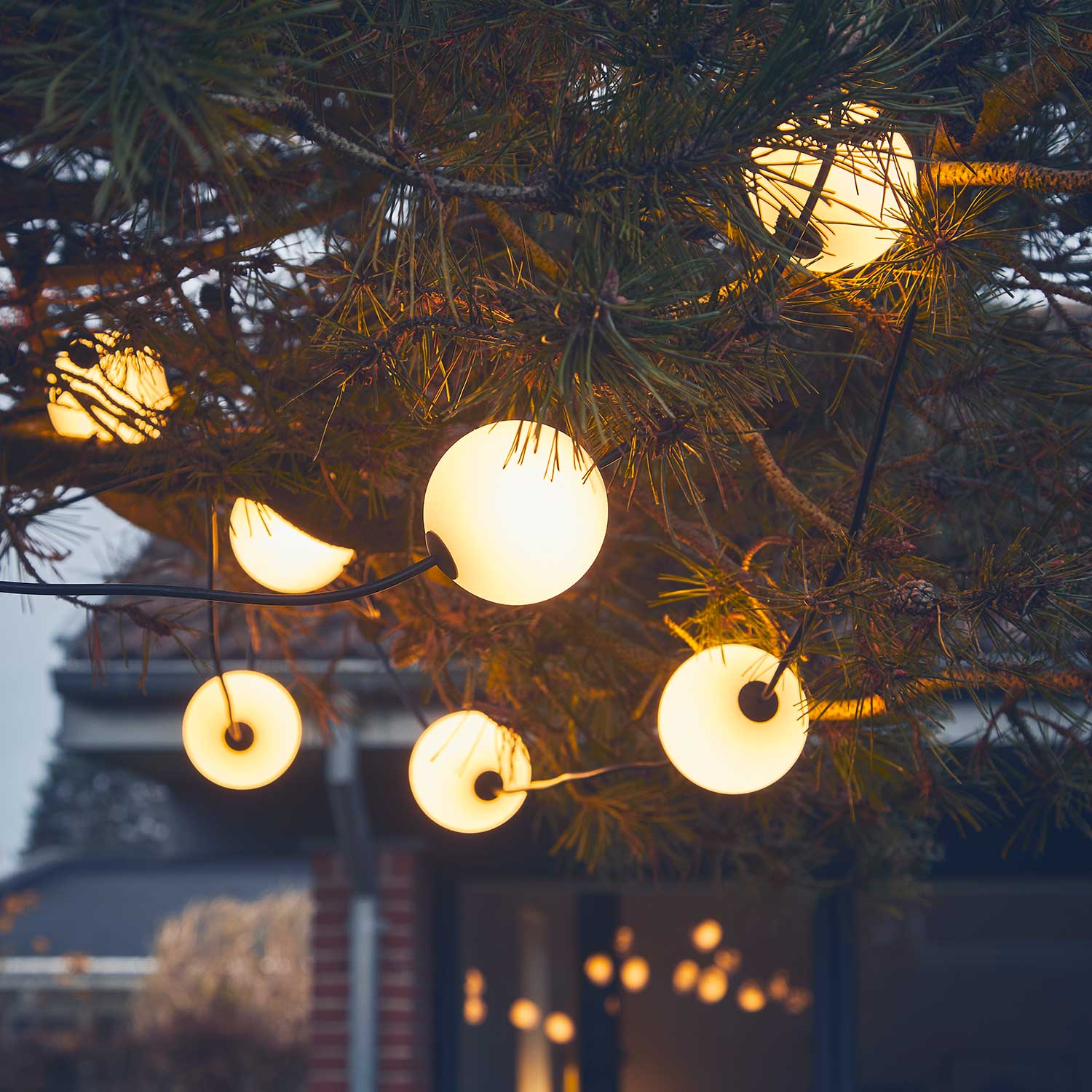 MISS Garland 20 is a decorative light chain with 20 round lamps (Ø10 cm) and an impressive length of 1434 cm, creating beautiful and atmospheric illumination. With its IP67 rating, this light chain is perfect for both indoor and outdoor use – and can even be placed directly in water, making it ideal for pools, ponds, or garden settings. The built-in LED light sources emit a warm 2500K glow with a total brightness of 20 x 80 lm, providing a soft and inviting ambience.