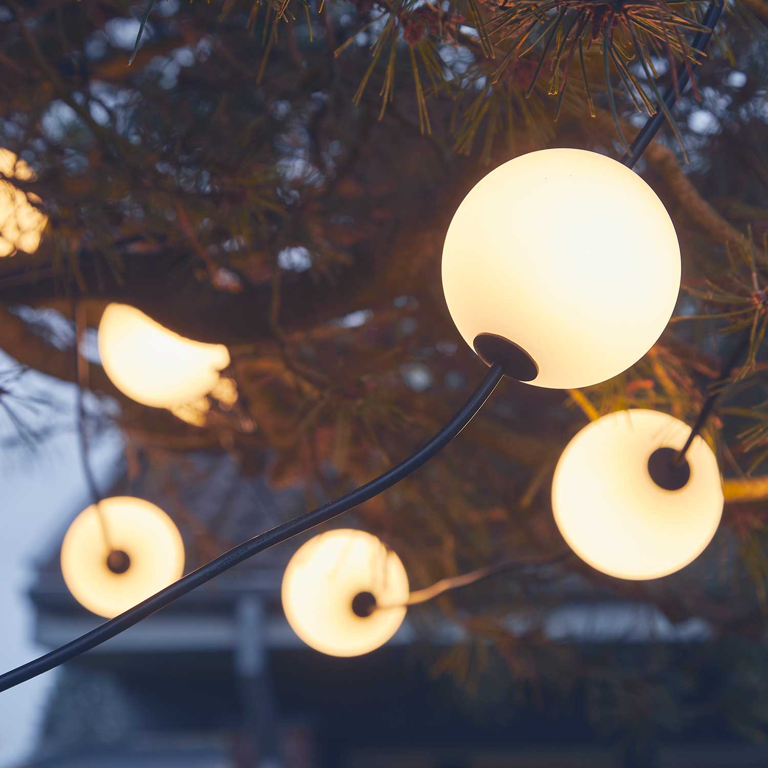 MISS Garland 100 is an impressive light chain with 100 round lamps (Ø10 cm) and a length of nearly 60 meters. It creates a stunning lighting display, whether suspended in the air, draped along a garden path, or floating on the surface of a pool or lake. With its IP67 rating, it is fully protected against water and dust, making it perfect for private gardens, large landscape projects, and professional installations.