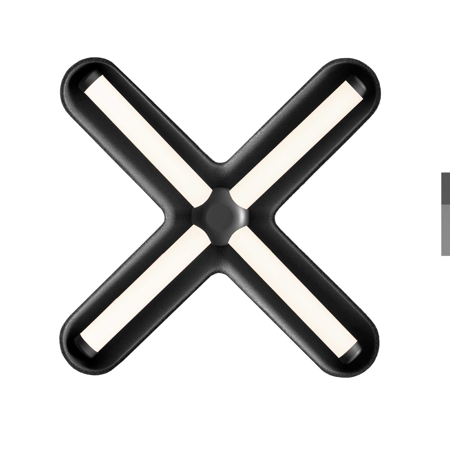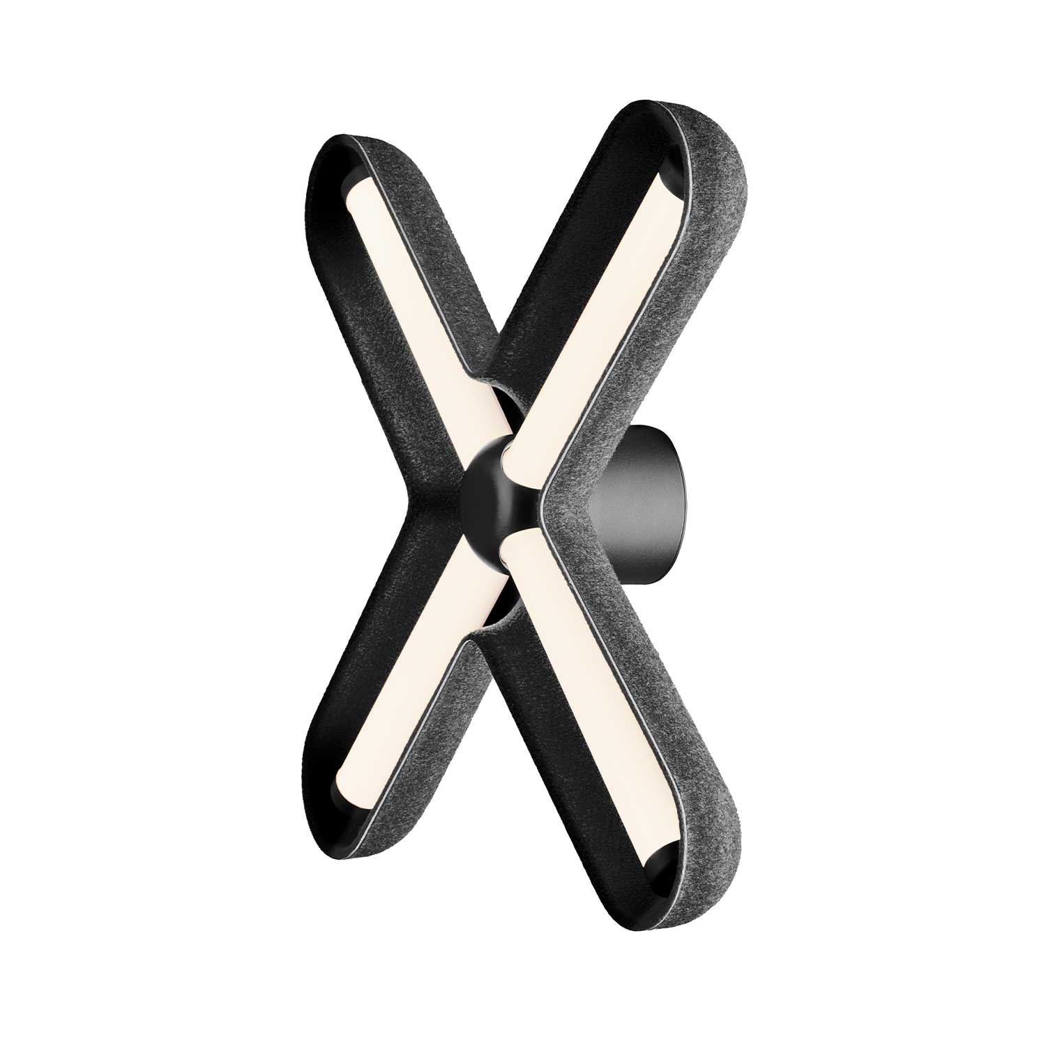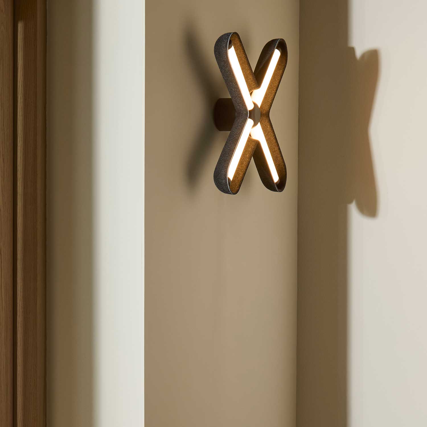 FUZZ Wall in black/black is a distinctive wall light that unites light and form in a graphic and architectural expression. The characteristic cross shape creates a strong visual statement on the wall, adding a modern and artistic dimension to the space.