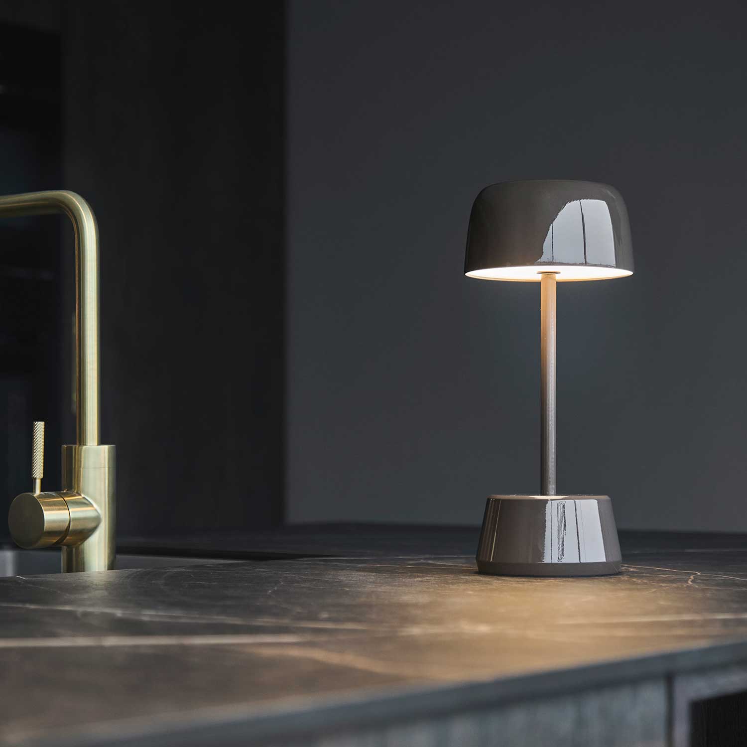 Dexter in Smoked Brownie is a stylish, wireless, battery-powered table lamp that combines functional lighting with a calm, sophisticated design. The deep, warm brown tone adds depth and elegance to any interior and creates a natural focal point on the table — both in private homes and professional environments.